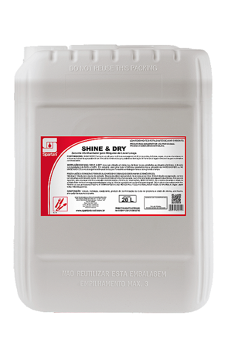 Shine & Dry da Spartan é um secante abrilhantador para uso em máquinas de lavagem de pratos, talheres, copos, xícaras e bandejas em lavadoras automáticas.